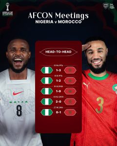 This is the first time these two giants have met in an AFCON tournament in 22 years. Their last meeting in this competition was in 2004, where Morocco emerged 1-0 victors. Historically, Morocco holds a slight edge with 6 wins to Nigeria’s 3 in overall meetings, but the Super Eagles’ current form makes them slight favorites on paper.
